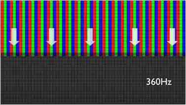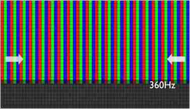 传统液晶驱动是从左到右单向进行,,在画面更新速度愈来越愈快的情况下,,位于驱动线路末端的右下角区域,,,,画素的闸极来不及在短时间内获得足够电压,,无法显示出正确的颜色资讯。。。。 |